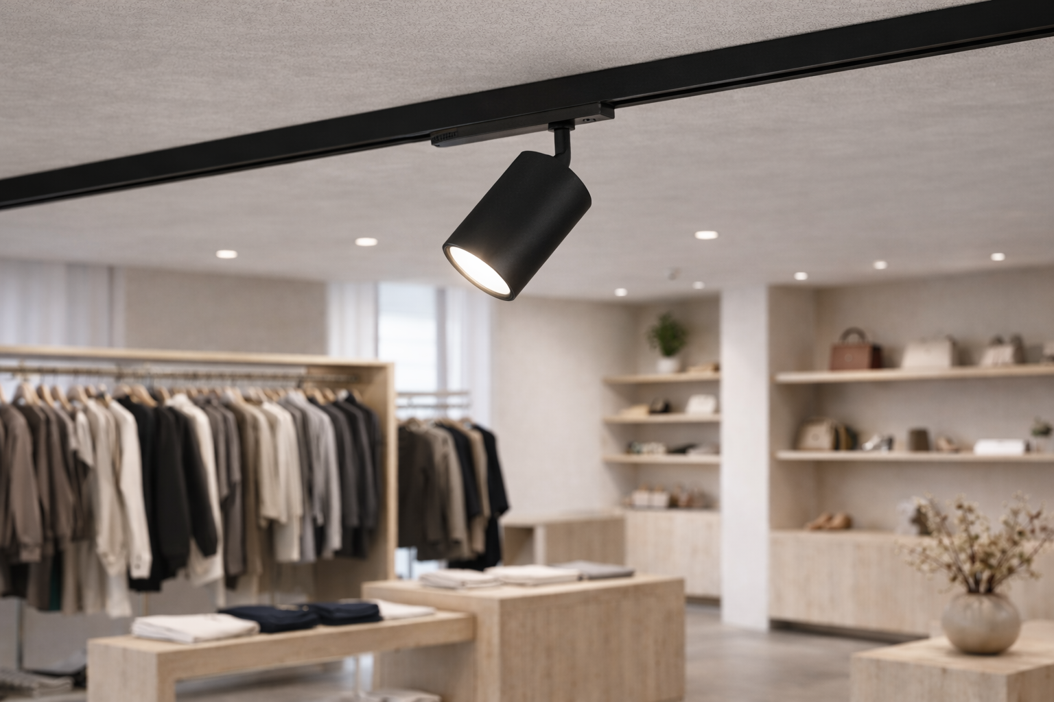 Illuminazione d’accento ideale per valorizzare prodotti, vetrine ed espositori, garantendo un’elevata resa cromatica e un controllo preciso del fascio luminoso